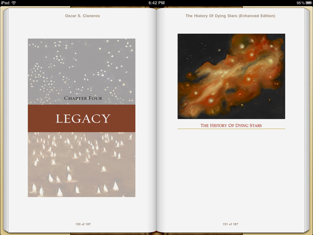 Oscar Cisnero's The History of Dying Stars, showing a running header created by the iPad Device.