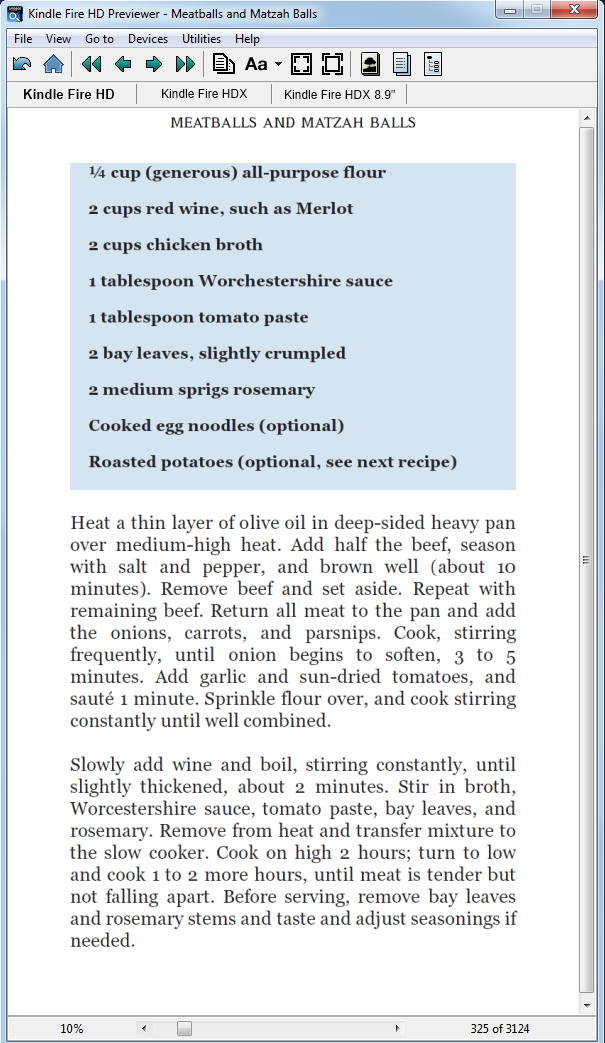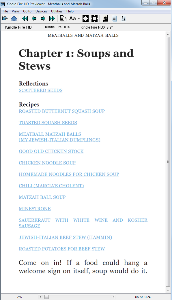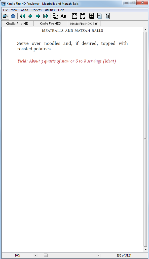 If you're seeking formatting for your cookbook, you already know that the layout can be challenging.  Click through out samples below to see how more-complex two-page spreads can be reformatted into usable eBooks in MOBI (Amazon Kindle) and ePUB (B&N's NookPress, KoboBooks, iBooks, GoogleBooks) format for online retailers.  Don't buy into the idea that a recipe book has to be "fixed-format," before you speak to us.  Click any book below to see the Gallery in a lightbox, zoomed for your convenience.