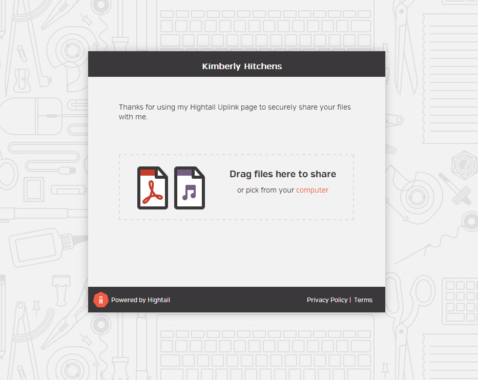 Hightail Step 1 -- Drag and Drop Your Files onto this window.